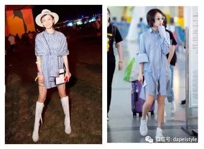 而对于小个子女生来说,衬衫裙还是她们的显高利器,只要裙长不在膝盖以下,基本视觉上增高个5cm不成问题。比如小个子中的代表:王子文跟周冬雨就给我们做了个很好的示范。