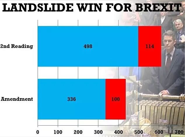当地时间2月1日晚,英国政府提交的“脱欧”草案以498票赞成、114票反对,获得英国下院大部分议员压倒性的支持。执政的保守党议员和大多数工党议员投票支持这项法律,而自民党和苏格兰民族党的议员则持反对意见。根据流程,在未来几周内,脱欧议案预计将走完国内法律程序,包括下议院提出修正案和上议院表决通过等。之后,梅姨将获得充分授权,在下个月与欧盟据此议案展开离婚案的世纪大谈判。