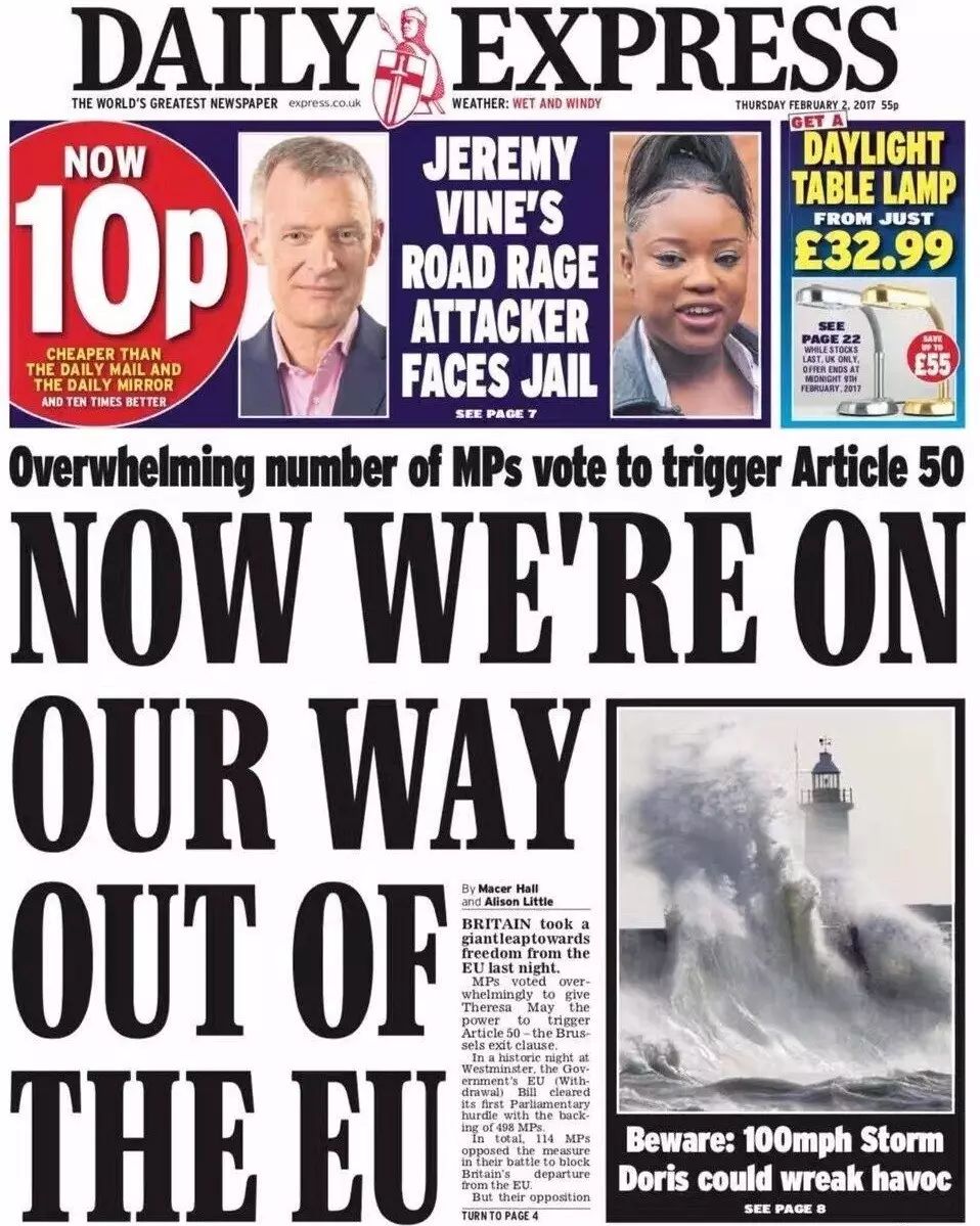 如果脱欧白皮书能顺利通过辩论投票,在3月初就可以递交上议院并得到王室授权,那梅姨在3月8日和9日出席欧盟峰会时,就可以正式触发里斯本50条,启动脱欧。