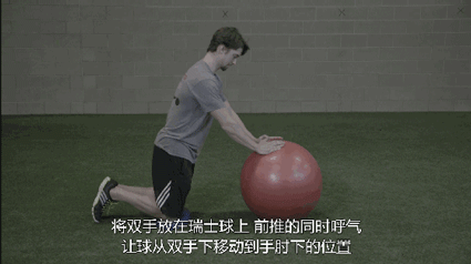 俯卧推球实际上只是短杠杆(跪姿)平板支撑,通过滚球来加长和缩短力臂。将瑞士球想象为一个大的健腹轮。运动员的力量越弱,开始时使用的球就应该越大。瑞士球的规格以厘米为单位;65和75厘米的球适合初学者。每个人都应从俯卧推球和平板支撑开始进行抗伸展能力的进阶练习,这非常关键。即便拥有强大腹肌(或认为自己是这样)的朋友也应该在前三周里每周进行两次俯卧推球。