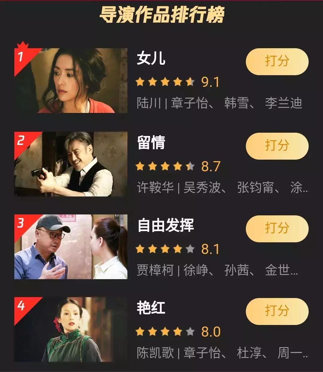 同样是章子怡参演的短片,《艳红》的分数目前垫底,而《女儿》位列第一。