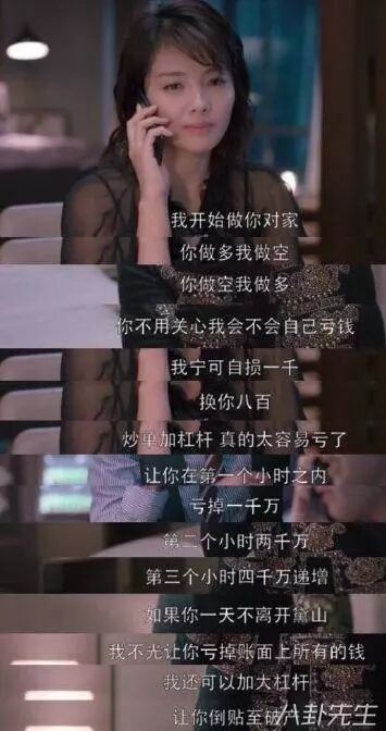男主角张孝全饰演的是一位金融奇才,地产大佬和建材大佬都向他请教怎么赚钱。谁知道张孝全居然建议他们赌上全副身家炒股,还承诺最终能赚3倍,于是大佬们都照做了▼