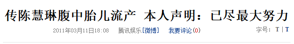 2011年,陈慧琳再次怀孕,但是却在第五个月就不幸流产了。