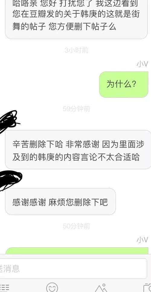 “韩庚粉丝后援团”也以理所当然的语气要求楼主删帖,说“言论不合适”、“冒犯到韩庚”
