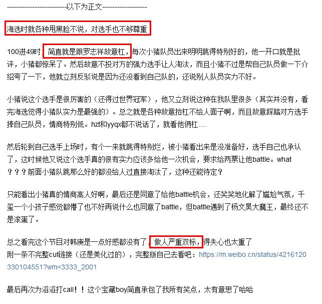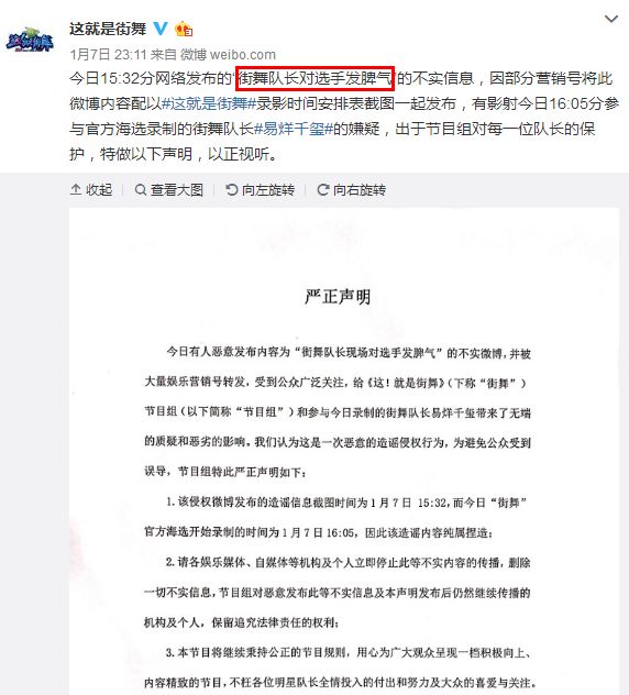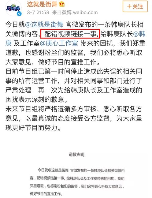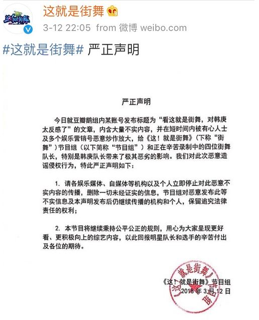 疑似《这就是街舞》节目组的人表示这次的声明不是节目组主动发的,那就是韩庚方要求发的?