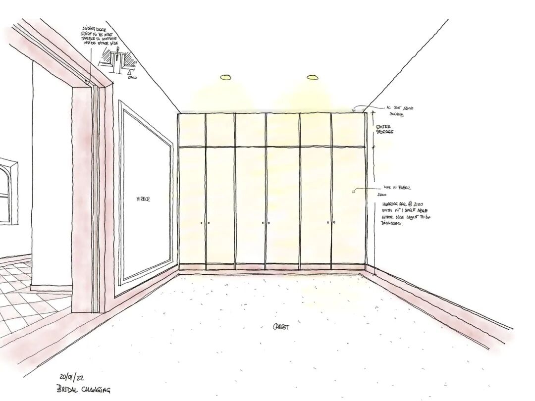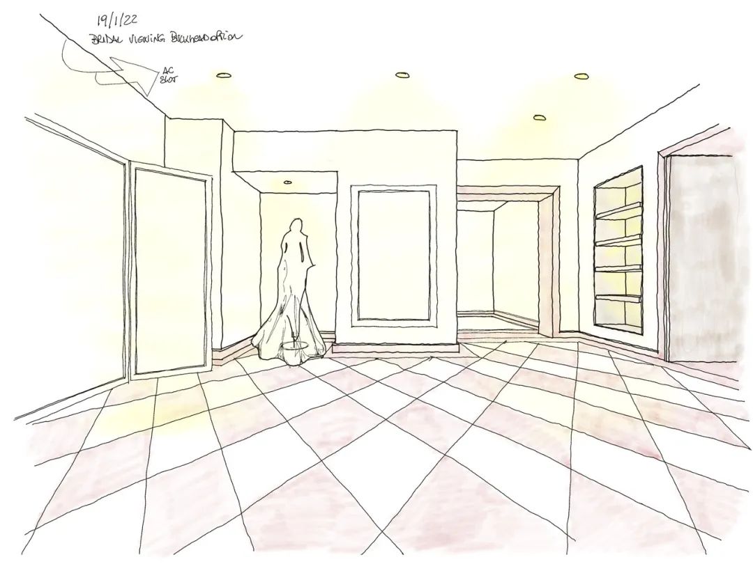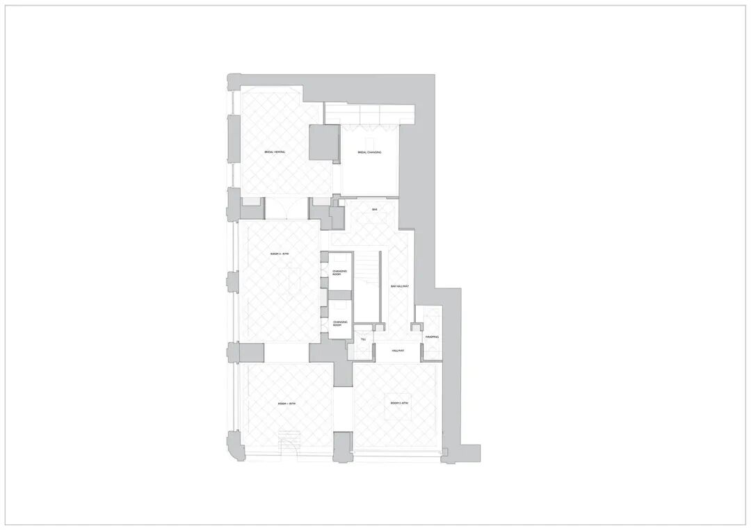 房间之间的移动是流畅的,视线可以不间断地延伸到商店的整个横截面。Rosa Alicante 大理石入口将顾客从成衣室引导到精品店的宝石——新娘区,通过桃花心木枢轴门进入,并用织物包裹,进一步增加了精致和个性化的触感。精致而一致的珍贵材料调色板,由 Rosa Alicante 和 White Carrara 大理石制成的棋盘地板,与抛光不锈钢吊轨和展示单元等定制元素相映成趣,并定制了镜子。在新娘区和成衣区之间创建了一个新的酒吧区,有一个令人惊叹的 2 公吨 Rosa Alicante 大理石柜台和一个定制的墙壁抛光不锈钢展示柜。楼下,Rosa Alicante 的大理石架子展示了该品牌精选的家居用品。