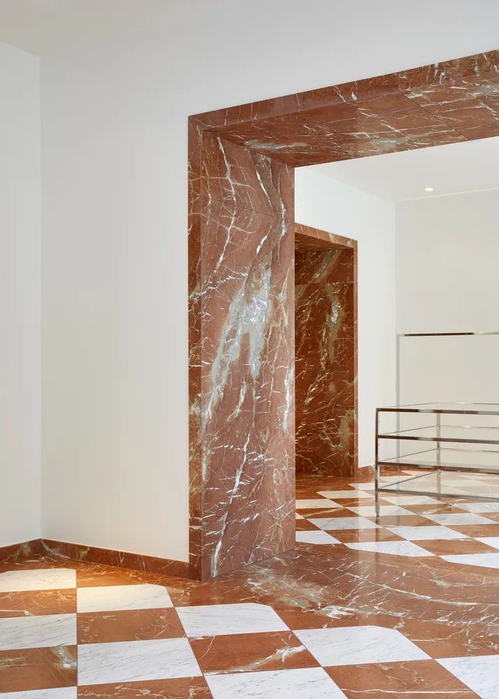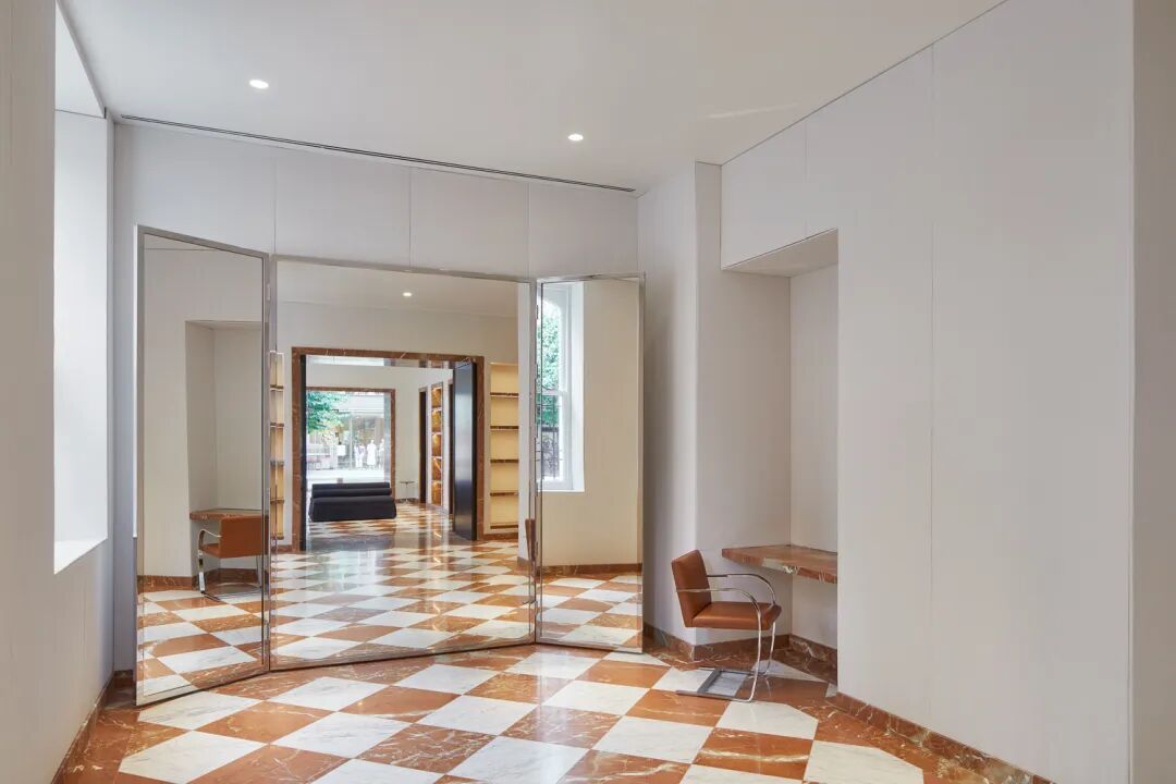 我们对新旗舰店的愿景是创造一个有意义的空间,准确诠释 Emilia Wickstead 永恒精致的精神,我们通过基于数学美学应用的理性、功能性设计、几何形状的重复实现了这一点Nenmar 建筑主管 Gianluca Nencini 说。该空间从意大利宫殿的经典而现代的分区中汲取灵感,其特点是连续的房间;新店采用了同样的方法,连续的房间(和时刻)以大理石门户的存在为标志,这些门户正式定义了空间,同时将它们连接起来。