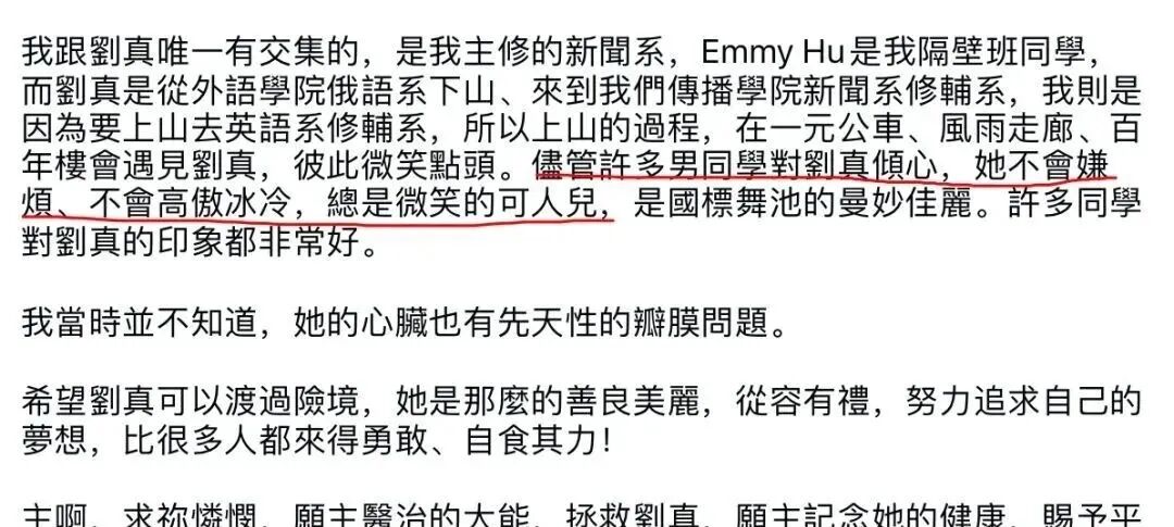 期间,有刘真的校友在社交平台发文回忆这位风云人物,并对她送上支持与鼓励,希望她快点好起来。