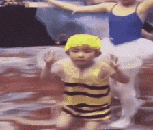 易烊千玺小时候就学跳舞,也参加了很多文艺演出,小时候千玺的造型很多遍,其中一次千玺还穿了小蜜蜂的服装,有两个白色的小翅膀,还带着黄色的蜜蜂帽,他一边跺脚,一边转着手指,看起来十分可爱,那似乎千玺跳舞都是很享受的,跟现在一样。