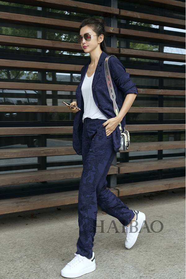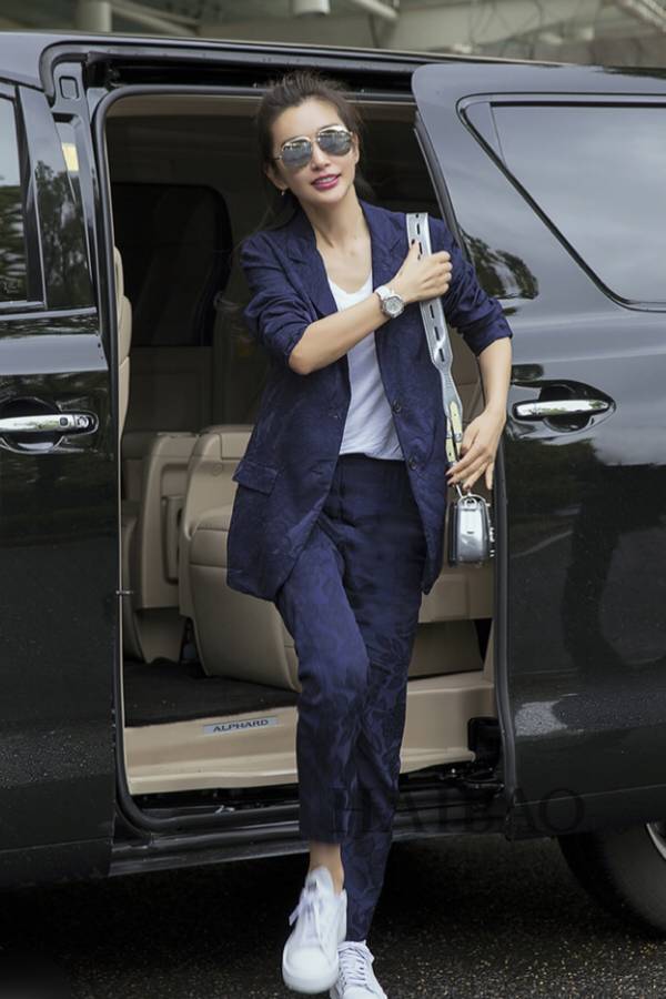 梳着清爽的半扎丸子头,李冰冰出发戛纳!面对长途飞行,她为自己挑了身宽松适度的Jil Sander压花西服套装,上衣敞开穿露出白色“老头衫”,与经典小白鞋相呼应,让深蓝调搭配不再单一暗沉,闲适率性!