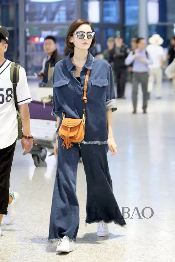 Chloe牛仔套装宽宽大大够个性,娜扎用白净高颜值衬托,甜美吸睛!
