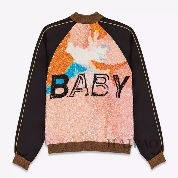 圣罗兰 (Saint Laurent) 拼贴亮片Baby字样短夹克的背面