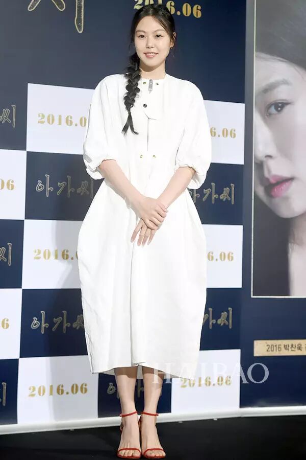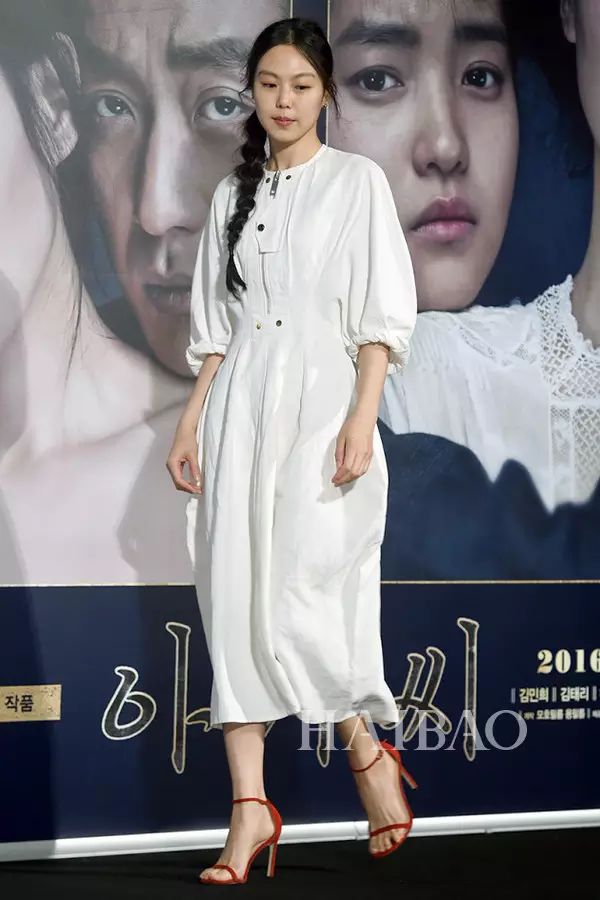 Celine 2016春夏女装秀T台上被麻豆演绎得洒脱的简洁廓形白裙,到了金敏喜的身上少了不羁多了柔情,田园风的侧梳麻花辫甜美似少女,配双红艳一字带凉鞋,优雅轻便又点睛!