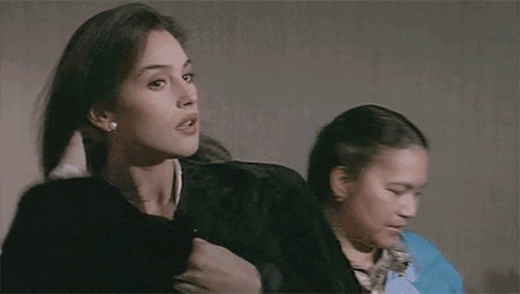 Karen不是传统意义上的美女,但这一头卷发,和她性感迷人的气质很搭。她的女人味和故事感,也是从浓密乌黑的发丝中一点一滴渗透出来的。