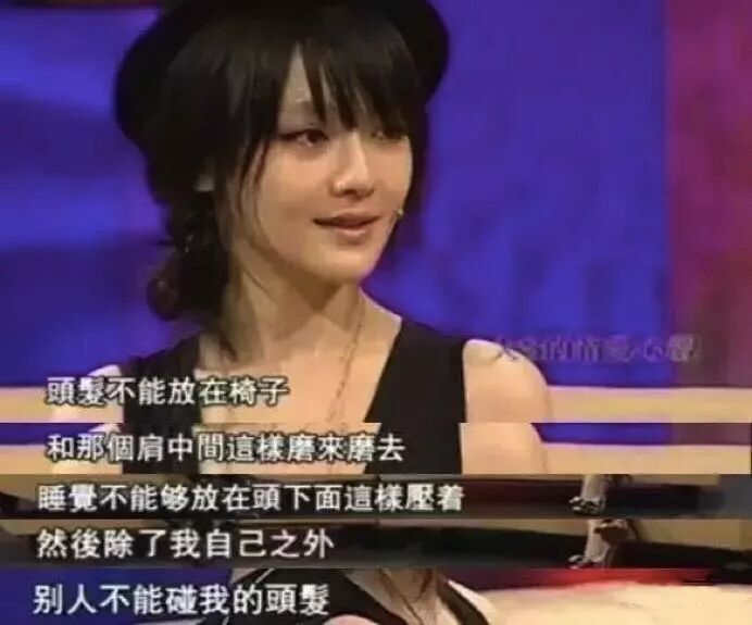 大S曾经说过一条铁律:即使是男朋友,也不能随意抚摸自己的头发。而且她还有保护头发“强迫症”:坐下前,先把头发放在胸前,因为头发是不能依靠椅背的。