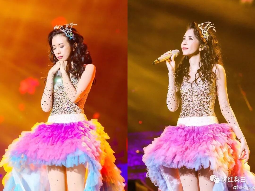 每场演唱会上,莫文蔚都准备了好几套“战袍”。没有拜拜肉,没有小肚腩,在亮闪闪的连体衣衬托下,她整个人好像都在发光。