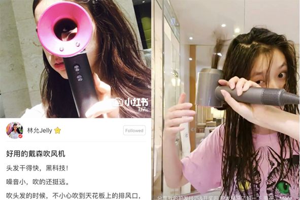 真·美妆美发博主·林允,也在小红书上晒过戴森的使用方法和体验感。