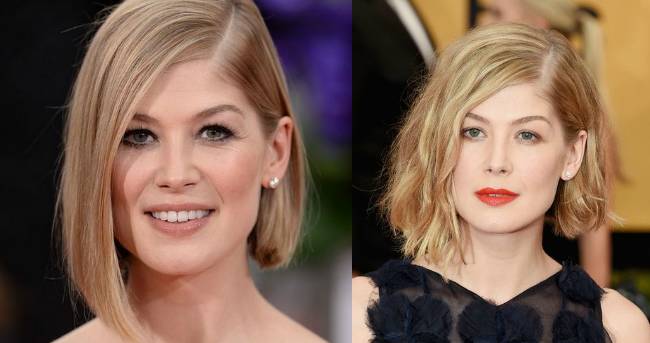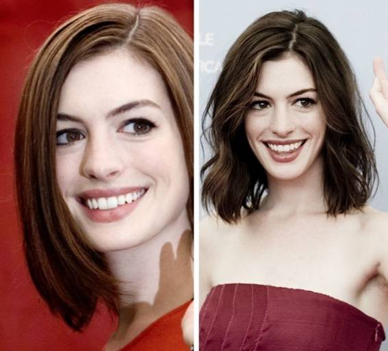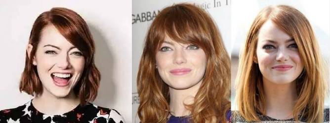 如果你是脸型比较短的,脸上有肉并且下颌角但不是特别方的。那么可以像石头姐一样,换上侧分的Wob头会比有刘海或直发的Lob头好很多。不仅有减龄的效果,而且能避免齐刘海的厚重感和因缩小五官面积堆在一起的紧促。