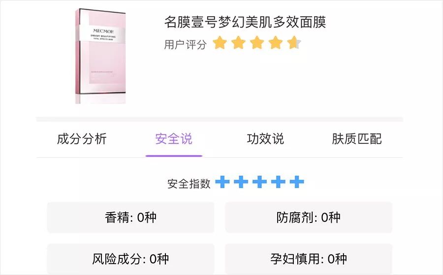 在中国最权威的化妆品成分查询平台“美丽修行”APP上,其安全指数达到5星级。而很多动辄千元的国际大牌都达不到这样的安全标准!