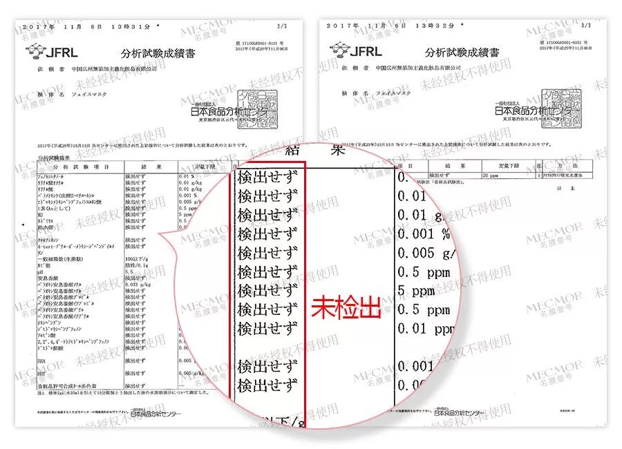 * JFRL(日本食品分析中心)是按照食品安全标准来检测的机构,它所检测的项目是全世界最齐全的,检验标准也最为严苛。目前国内因技术和标准查不出的有害物质,全都逃不过JFRL的法眼。