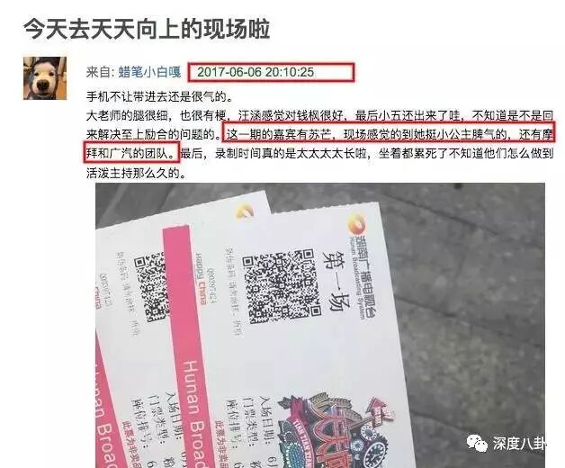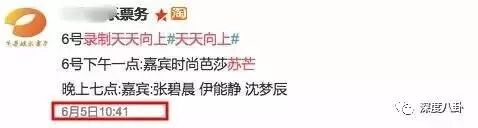 还有豆瓣网友在6月6日晚上8点发帖说,自己去了《天天向上》的录制现场,当天的嘉宾是苏芒等人,也再次证实了这一期节目的录制时间。