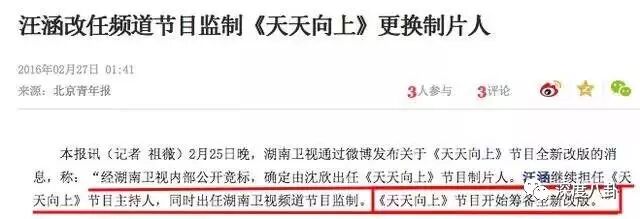 2016年2月,湖南卫视通过官方微博宣布,《天天向上》开始筹备全新改版,沈欣接替汪涵成为新制片人,而汪涵继续汪担任《天天向上》节目主持人,同时出任湖南卫视频道节目监制。
