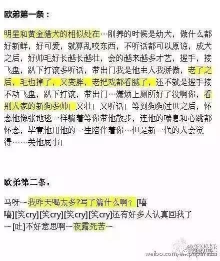 删了以上两条微博之后,欧弟又发布微博说他只是在感慨演艺圈的工作和狗很类似,麻烦大家不要瞎猜。