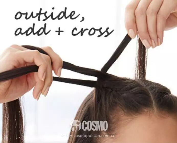 STEP2:顺序就是简单的三股麻花辫,按照这个方法往下编就可以了。