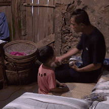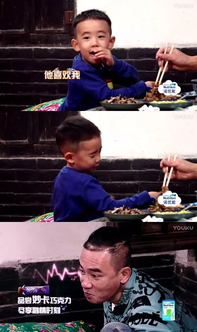 第二期录制时和爸爸一起第一次在炕上盘腿吃饭,他用手圈在嘴上,悄悄对站在一边的导演姐姐说:「他喜欢我哎……」。