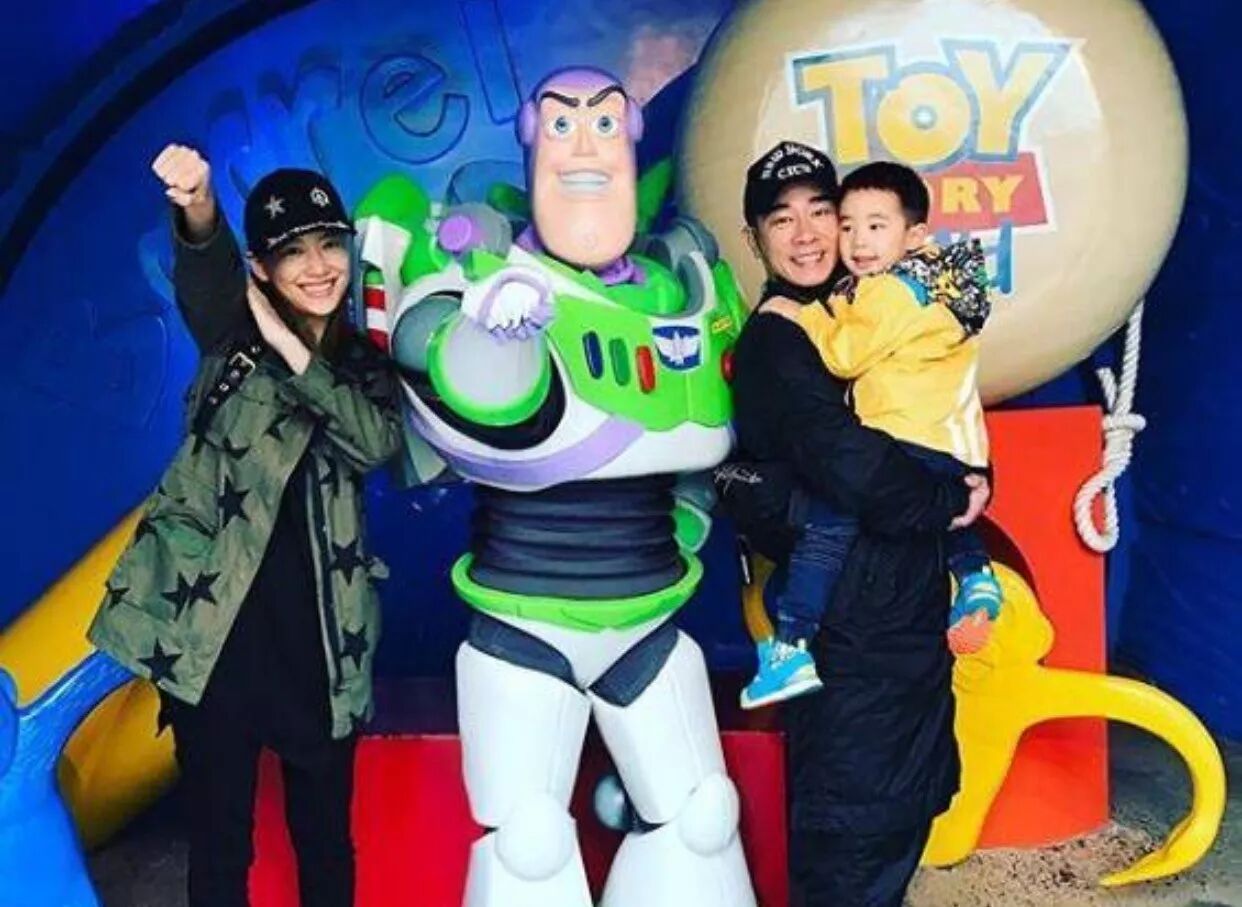 陈小春、应采儿带Jasper去迪斯尼乐园玩巴斯光年