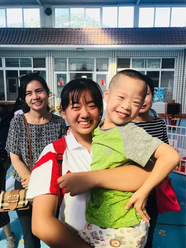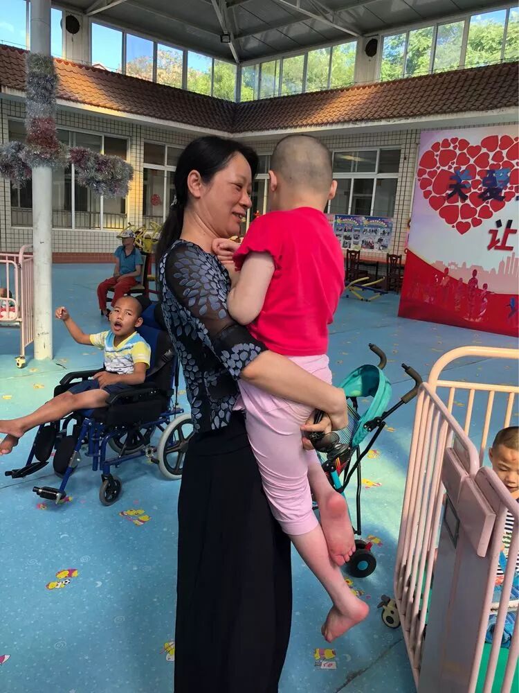还有这个院里最喜欢抱抱和手挽手的女生。所以家长和同学们就给了她各种抱抱,这个上午我感觉她像个明星一样很有范儿。最后我们走的时候,她特别不舍,牵了这个又牵那个,虽然不会笑,可是动作表达了她的心声。