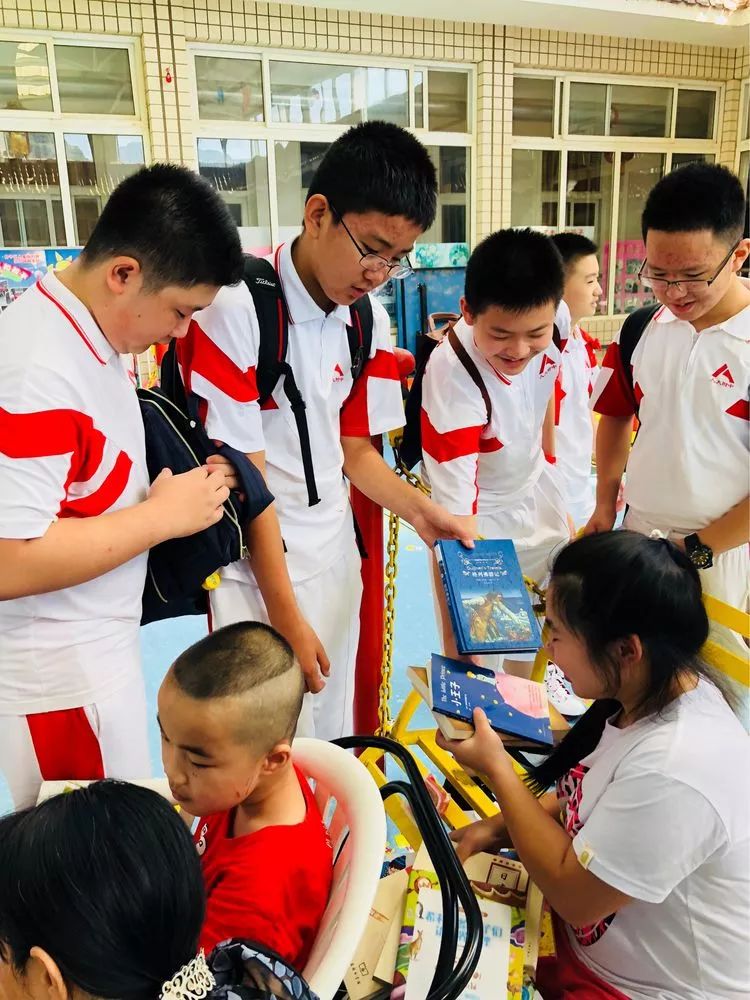 这个孩子也不太会说话,但他特别喜欢同学们给他送书,虽然他现在还不一定能看懂。但他收到书这个礼物后的开怀大笑深深刻进了我们的脑海。