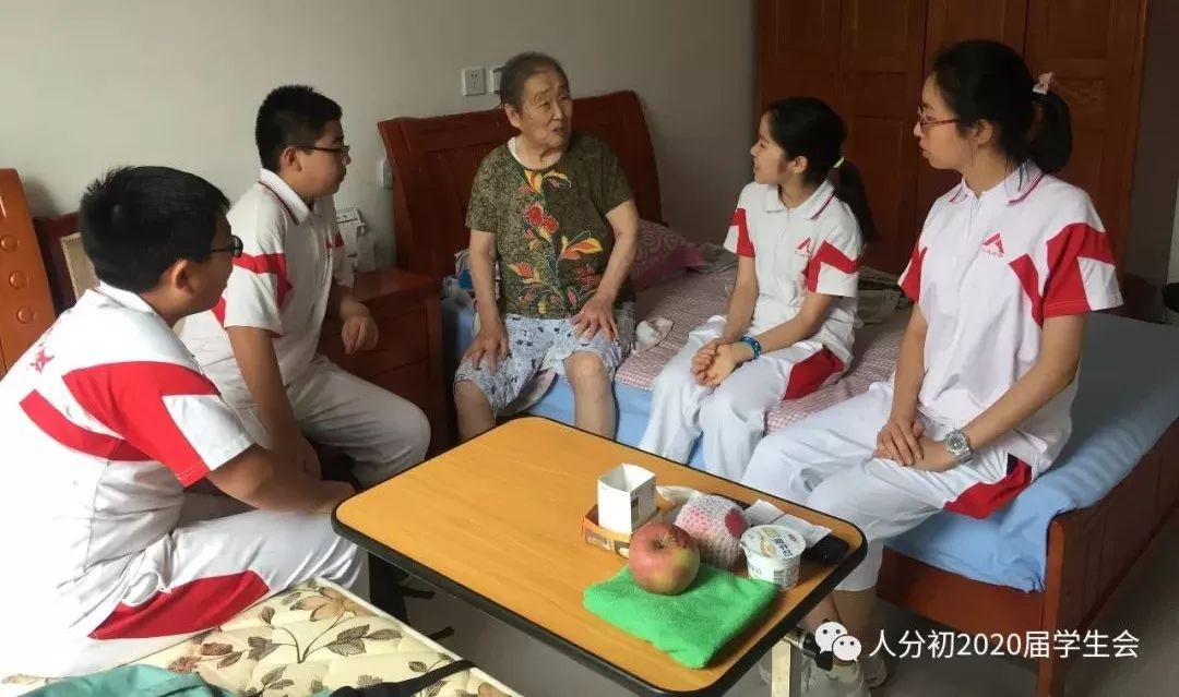 2018年7月13日下午2:00,人大附中分校新初二七班33名同学来到北京市广内德馨养老照料中心,怀着崇敬的心情拜访了这里的老人们。