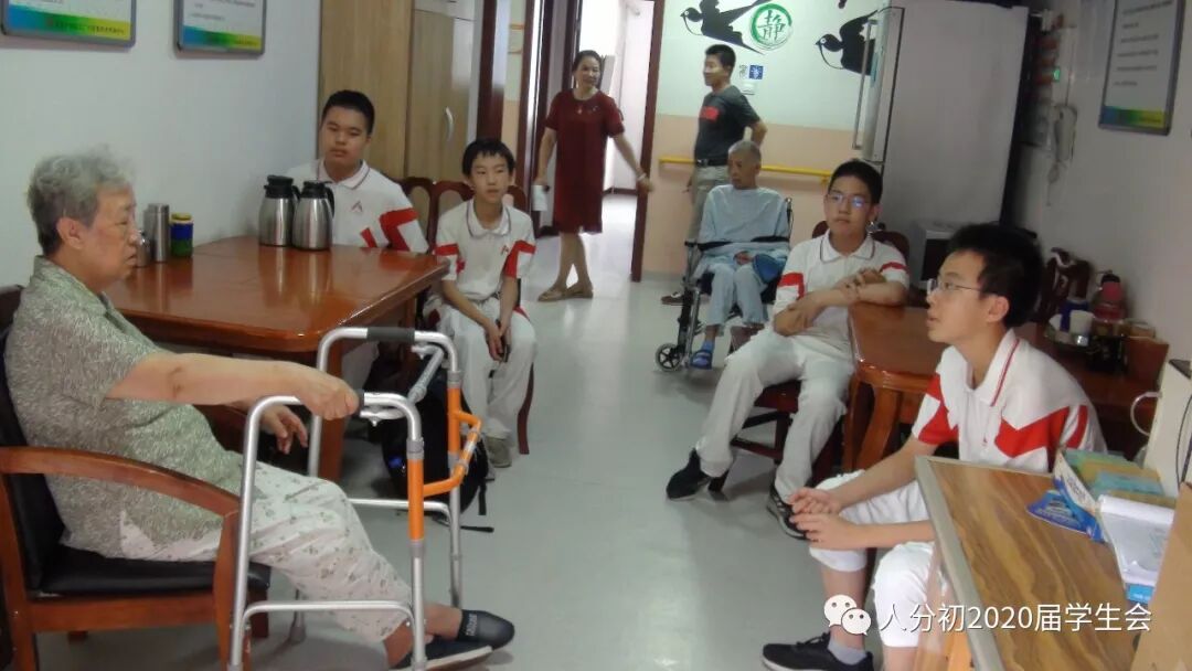 在养老中心工作人员的带领下,同学们三人一组,访问了养老院的老人们。别看他们已至耄耋之年,却是深藏不露、志在千里的高手,上至中美贸易战,下到世界杯……老人家如数家珍,真是令人称奇。朝鲜战争、渡江战役、教书育人……老人们和我们分享他们光辉的过去和一些平凡而令人感动的故事。在养老院,有些老人几乎已经无法听见声音,但他们还是带着幸福的笑容与我们开心地聊天。同学们在和爷爷奶奶的交谈中,逐渐被老人们热爱生活、尊敬生活的态度感染,和老人们聊地越来越放松,逐渐地,同学们为老人家表演了丰富的节目,唱歌、跳舞、诵诗……从旋律神奇的尬舞,到一本正经的尬歌,真可谓无奇不有。看到老人们脸上舒展开的笑纹,想必藏进了一次快乐的回忆,而我们也倾听着长辈们动人的故事。忘不了他们语重心长的教诲“要做自己感兴趣的事情”,也忘不了他们说的“要传承我国传统文化”……这些长辈们总结出的人生智慧,代代传承,终于又到我们这里,这些道理给了同学们很大的启发,老人们身上宝贵的人生经验和生活智慧给我们大家上了宝贵的一课。