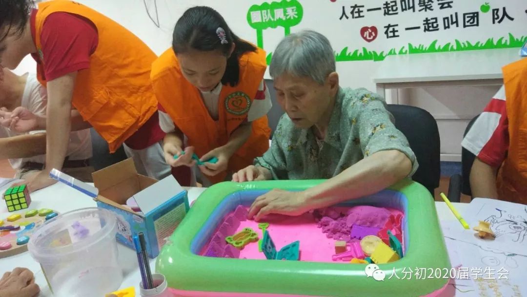 对于同学们来说,这里能陪老人们聊天、下棋,只是不同于其他敬老院,这里的爷爷奶奶有点特别。他们都是患有认知障碍的老人,他们会反应比其他老人迟钝,他们有的时候会把你当作他们的亲人,他们会像个小孩子一样,爱玩橡皮泥,爱听故事。就像我们小时候一样。