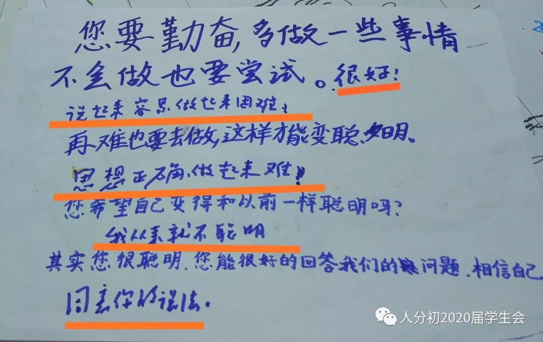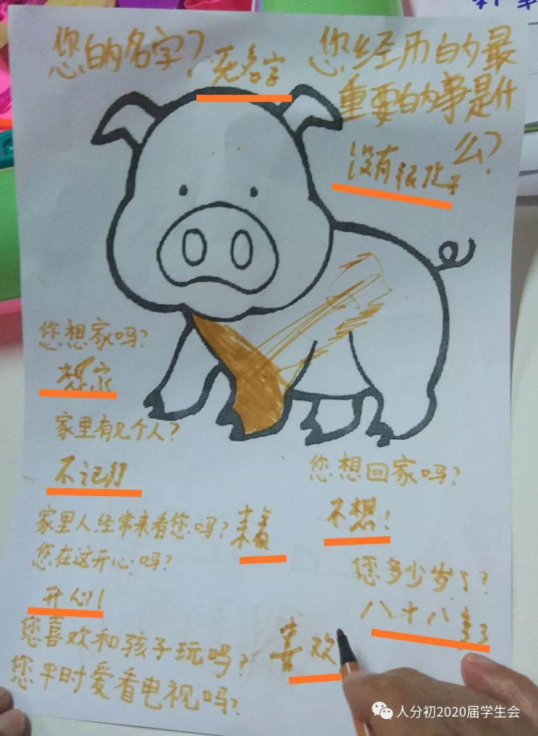 我们还与听力有障碍的老爷爷用纸笔“交谈”了许多,这位爷爷是一位有丰富文化底蕴的老人,他虽然已经88岁了,写起字来却仍刚劲有力,他认真地书写着一笔一划,耐心地解答着我们的问题。在交谈中,他说他很喜欢和孩子们交流,也很喜欢小孩。
