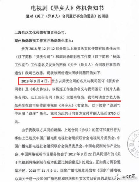 到了2018年,杨烁拍摄电视剧《异乡人》,片酬到了8750万。