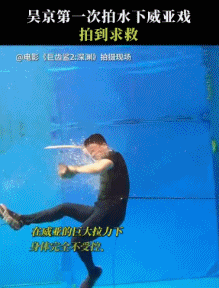 第一次拍水下威亚戏,吴京连拍10小时,被憋到打手势紧急求救。