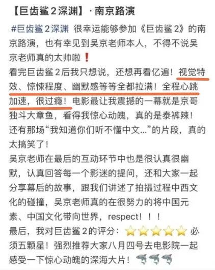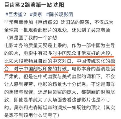 这次深度参与《巨齿鲨2:深渊》,释放的信号很明显:
