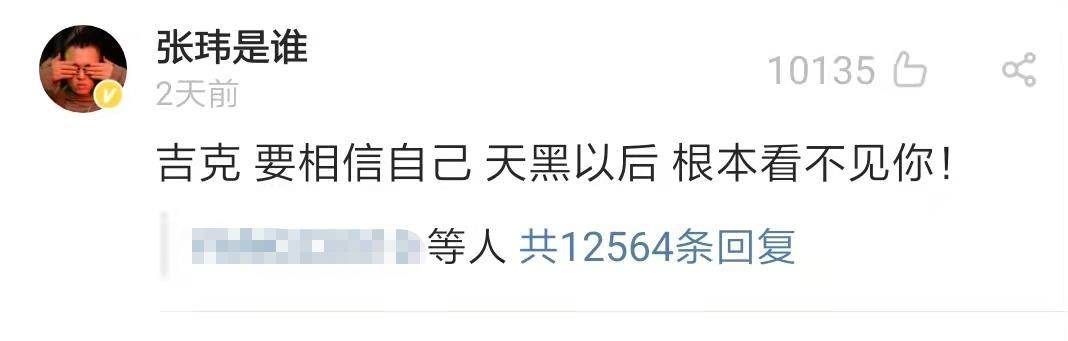 我不知道那几个女生是什么感受,但仅仅是听着这种描述,我就感到浑身无力。这种感觉,让我想起近几年很火的“分娩体验”。无数女生,为了让老公体验自己生孩子的不易,生拉硬拽地把他们摁到分娩体验仪上。从第一级,疼到第十级。直到男生疼得浑身瘫软,才会在缓过神来之后,说一句,“你真的辛苦了。”可生活不是一台分娩体验仪。我们从来都没有办法,让那些冷眼鄙夷的人,一个个去设身处地。还能怎么办呢?我想,也许吉克隽逸的“不搭茬”,就是能想到的,最好的办法吧。既然分辨无用,讲道理也听不懂。那莫不如就让张玮之流,在那开着自以为很好笑的玩笑。然后让他在最渴望被关注的时候,得到最冷漠的回应。没有人附和,没有人搭理。如跳梁小丑般,自己捧着手机,发烂,发臭。等到他自己也尴尬、无趣到抠出三室一厅之后,也许才能真的长点记性。就像网友在张玮留言下评论说的,谢谢他们,早点学会闭嘴吧:)点个“在看”,让更多姐妹知道,对待恶臭男,像吉克隽逸一样闭麦,不给对方蹭热度的机会,也许就是最好的惩罚。 END
