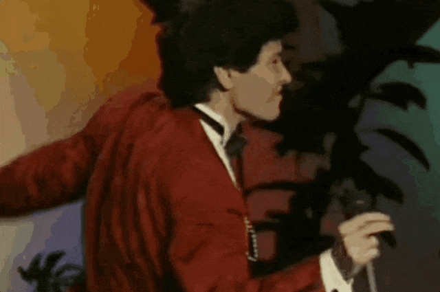 前者令人动容,深情款款;后者则直接让春晚的气氛达到高潮,费翔身穿标志性红色礼服与黑色西装裤,扭动着优雅舞姿,外加一张棱角分明的混血脸庞,彻底击中沉闷已久的国人内心。