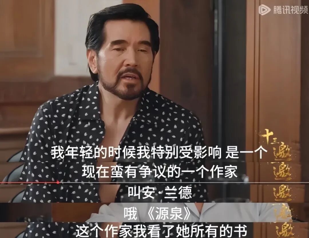 费翔提到他年轻时很喜欢的一位作家安·兰德,他读完了她所有的书。