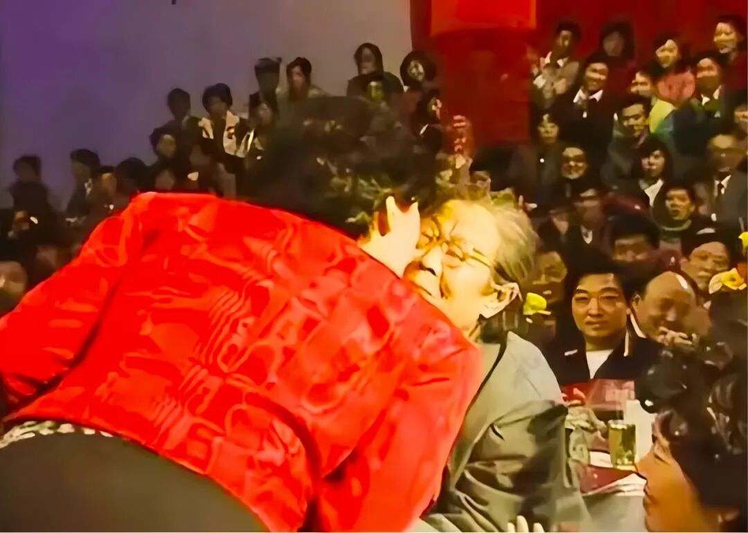 一曲终了,在介绍这首歌,他走下舞台,拥抱亲吻了自己的外婆。