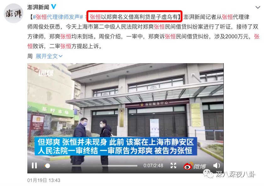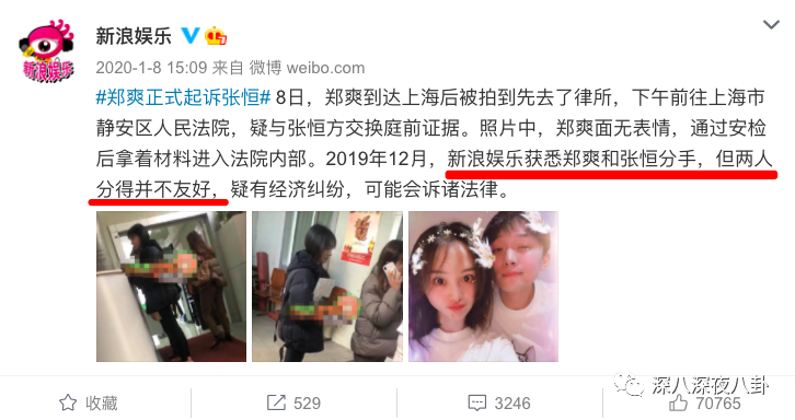 所以2020年1月张恒奇奇怪怪的情绪,是可以追根溯源了。这会儿郑爽在上海告他了。