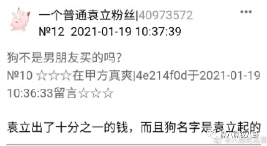 巧的是,今天有一位叫“一个普通袁立粉丝”的网友一直在回复偷狗相关细节,主要是回复地太具体了,连买狗花了多少钱,谁起的名字都知道,所以被大家怀疑这就是她本人。