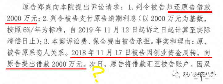 郑爽的诉讼申请里说张恒欠她2000万。