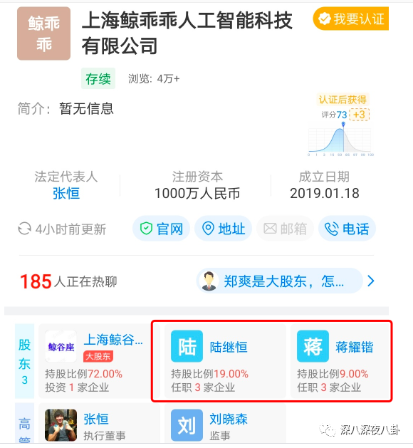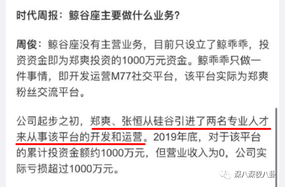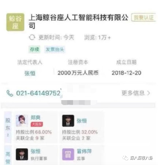 郑爽张恒夫妻店的所有员工,都在鲸乖乖公司。2019年年初,郑爽在鲸乖乖投了1000万。这笔钱是烧没的。