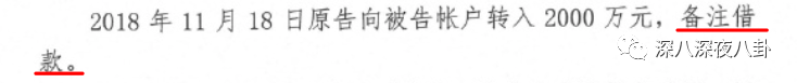 我们看一看这是怎么回事。在2018年11月郑爽给张恒打了2000万元。备注写:借款。这是欠钱的依据。
