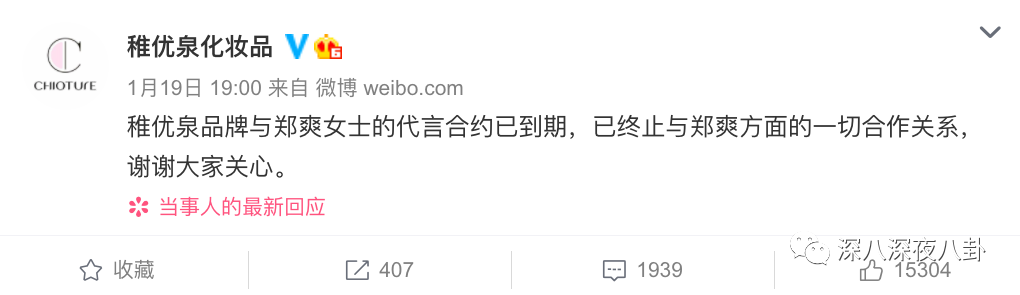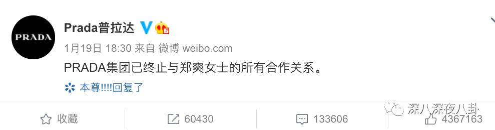 1月11日才官宣郑爽为代言人的Prada反手结束合作关系。之前合作的品牌也相继表明态度,要么是当即解约,要么解释合作在之前已经结束。