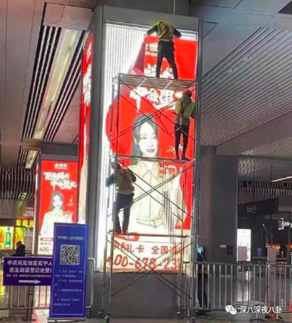 今天凌晨,有网友拍到在高铁站郑爽的广告牌被撤除。